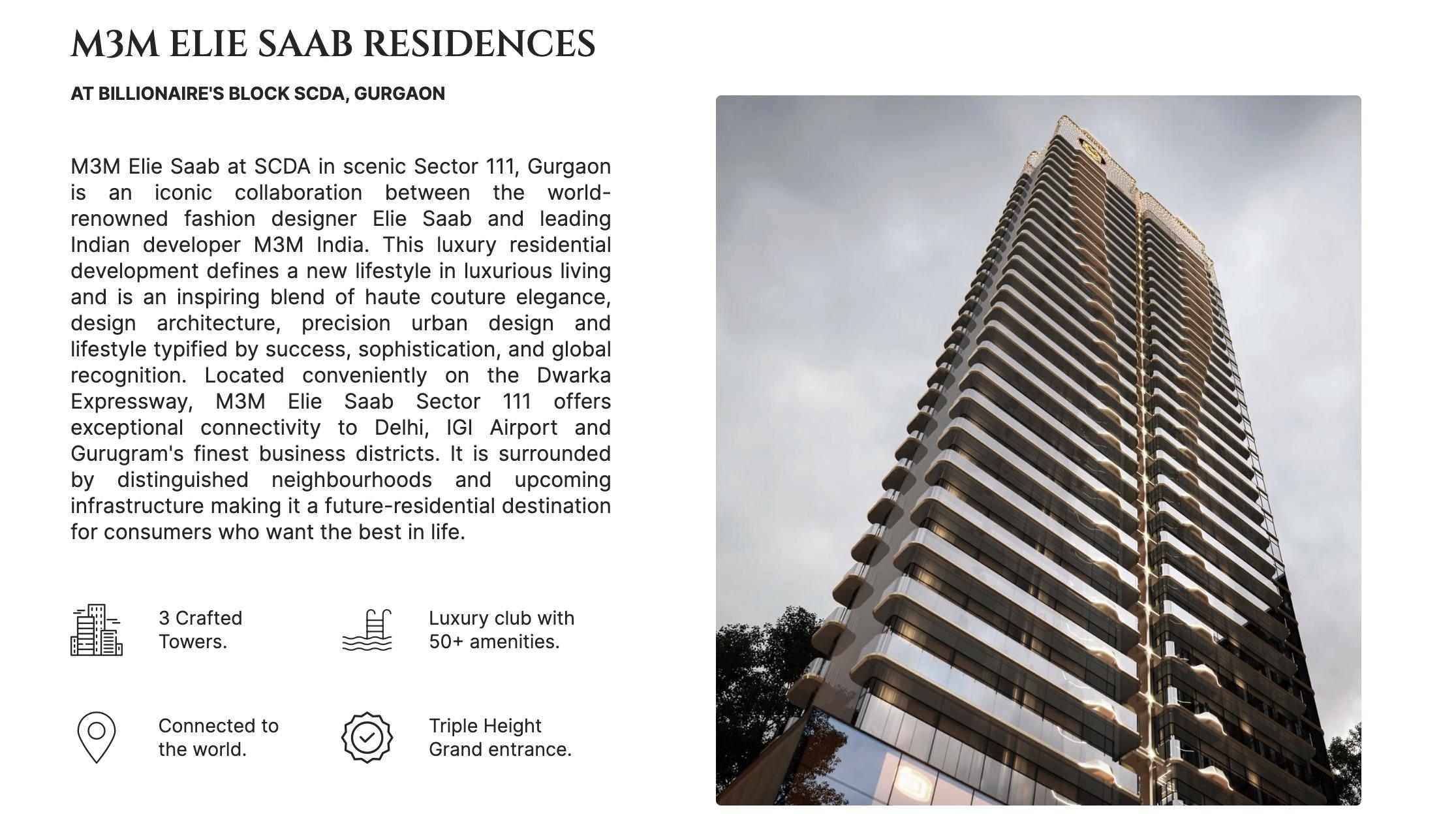 3. M3M Elie Saab residences in India — branded luxury homes in places like Gurgaon and Noida, reflecting Saab’s style in high-end real estate.