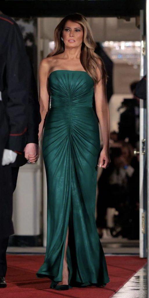 Melania Trump shone in green at the welcome dinner honoring Saudi Crown Prince Mohammed bin Salman at the White House.